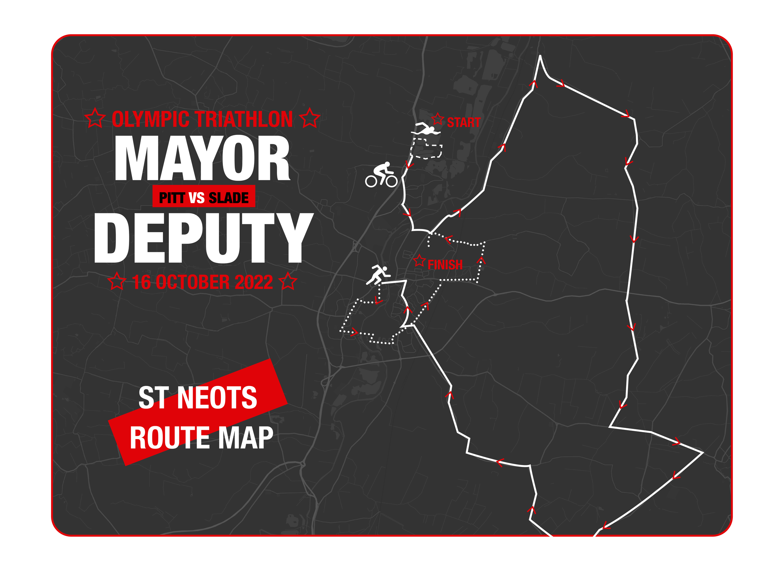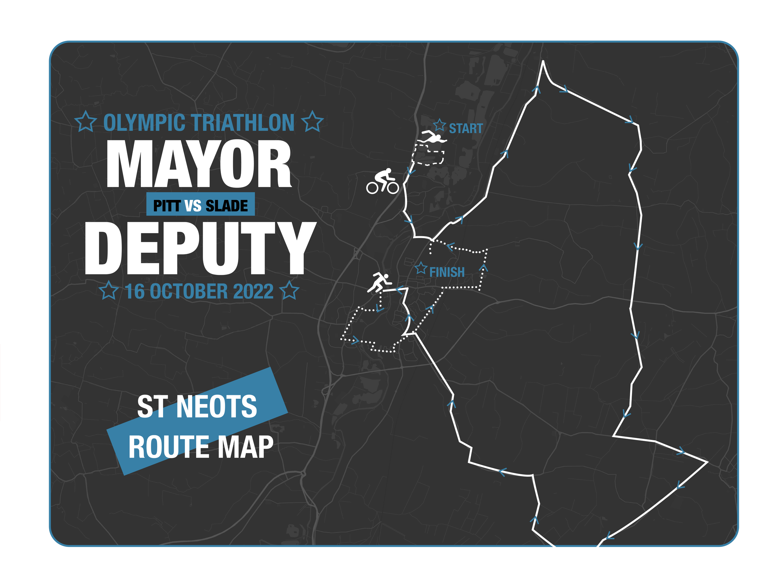 Mayor VS Deputy was part of a charity event, in which the mayor and deputy mayor of St Neots went head to head in a triathlon challenge. In order for the challenge to be recognised by the local community the pair wanted the camping to have a particular branding scheme. Taking inspiration from the classic boxing aesthetic the challengers were positioned in coloured corners focusing on the head to head aspect.